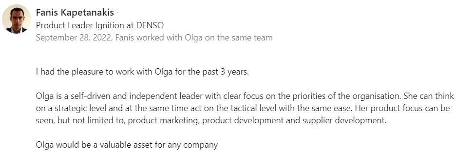 Core responsibilities: Team leadership of a supply planner, a demand planner, an application engineer and a marketing specialist for EMEA operation for 2 product lines. External and internal customer (Toyota Motors, Mazda, Subaru, LKQ Group and other) satisfaction improvement, assuring product and service quality, sustainable financial returns. Timely delivery of product related projects. Close collaboration with design and engineering department, production plants, quality departments, customer category and quality management teams.